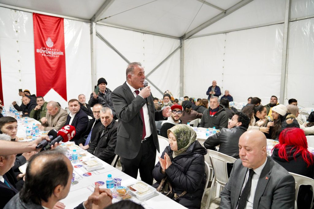 İBB Başkanvekili Nuri Aslan, Ramazan ayının beşinci iftarında Bağcılar’da kurulan gönül sofrasında, İstanbul’un farklı mahallelerinden gelen vatandaşlarla buluştu. Masaları tek tek ziyaret eden Aslan, vatandaşlarla sohbet ederek dayanışma ve paylaşma kültürünün önemine dikkat çekti. Konuşmasında, kalabalığa İBB Başkanı Ekrem İmamoğlu’nun selamlarını ileten Aslan, birlik ve umut mesajı vererek, “Ekrem İmamoğlu sizin mübarek Ramazan ayınızı kutluyor. Ramazan ayı biliyorsunuz Kur’an-ı Kerim’in indiği aydır. İstanbul da Peygamber efendimizin müjdelediği, Fatih’in fethettiği bir şehirdir. Bu şehrin bayrağını Ekrem İmamoğlu taşıyordu. Şu an ne yazık ki Silivri zindanında. Biz de onun emanetçisi olarak Fatih Sultan Mehmet Han’ın fethettiği şehrin bayrağını elimizde tutuyoruz. İnşallah Allah’ın izniyle geri gelecek, hem Allah hem İstanbul yoluna hizmet edecek. Bizim anlayışımız yoksulun yanında olmak, zalimin karşısında olmak. İşte biz bu felsefeyle hareket ediyoruz” dedi.