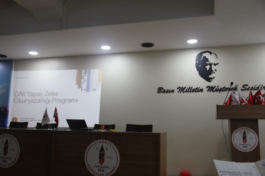 İstanbul Gazeteciler Derneği (İGD) ve Google iş birliğiyle düzenlenen “Dijital ve Yapay Zekâ Okuryazarlığı” eğitimiyle, gazeteciler dijital dünyanın geleceğine hazırlandı. İGD merkezinde gerçekleşen eğitimde, yapay zekânın habercilikte etik ve etkin kullanımı masaya yatırıldı.